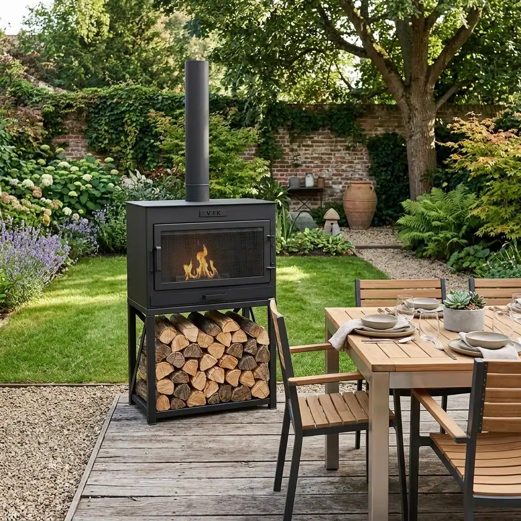 VIK LUX Cosy Gartenkamin Schwarz – Der perfekte Stimmungsmacher für deinen Gartentisch